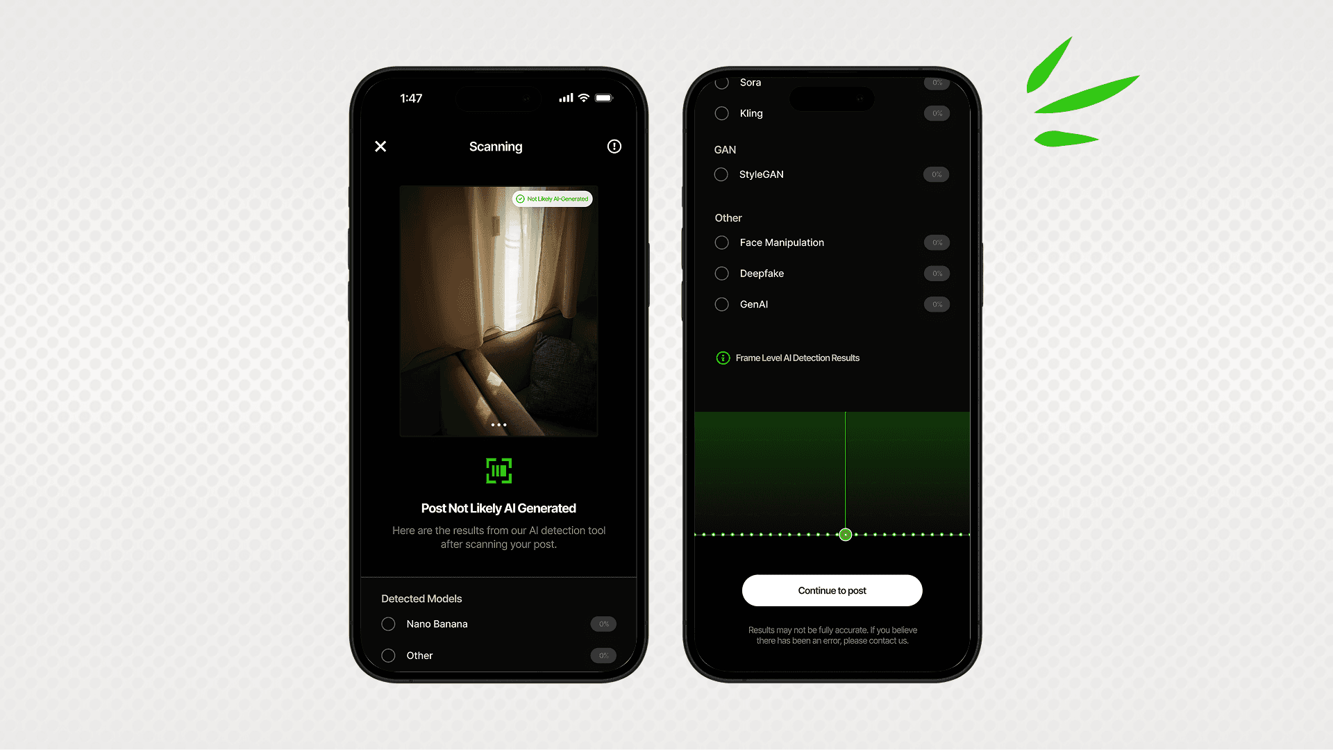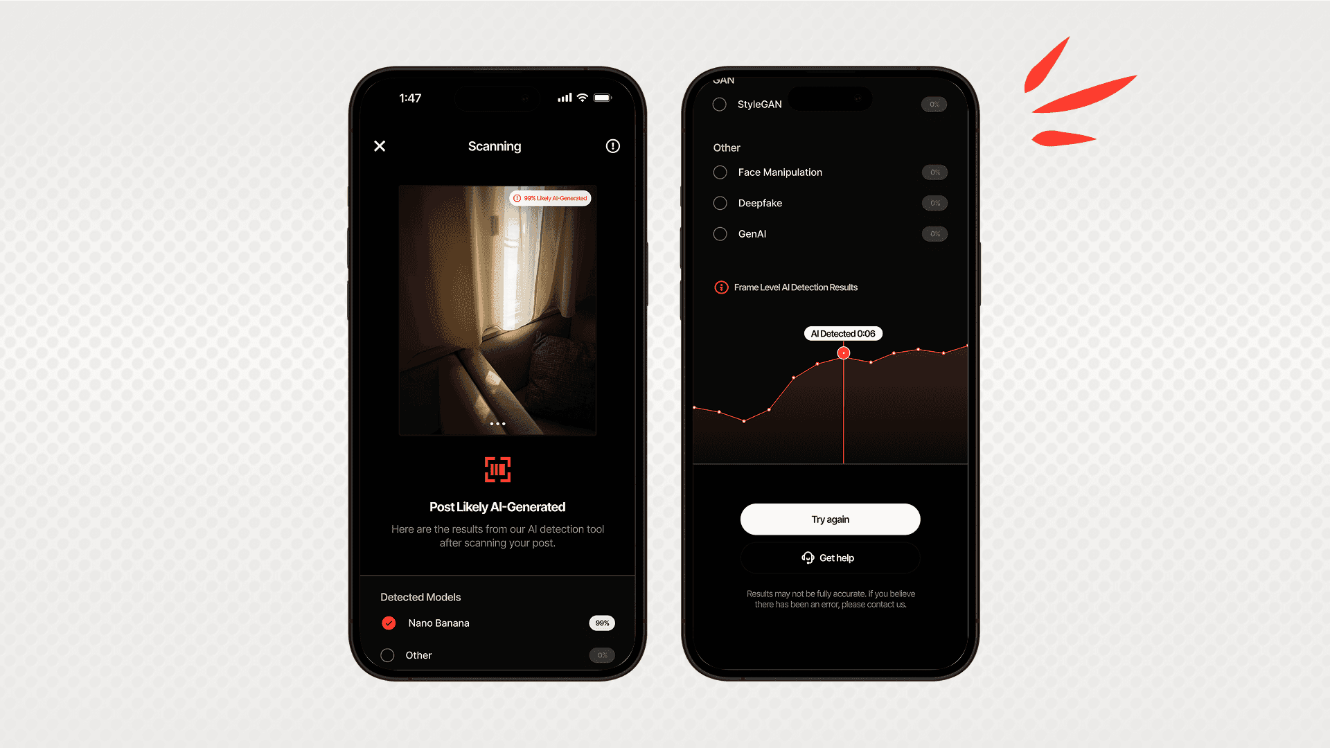 Our platform analyzes uploaded media using detection technologies designed to identify possible indicators of artificial generation or manipulation. When content is reviewed, users can see contextual signals that help them better understand what they are viewing.