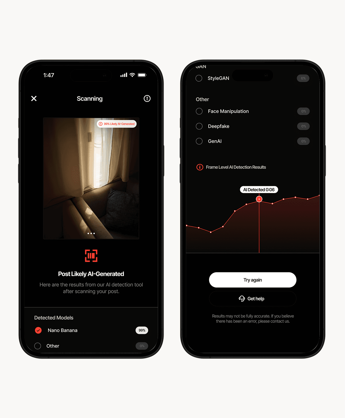 All content on RealScroll is reviewed using intelligent detection technology to help identify artificial media. No more guessing. Just clearer context around what you’re seeing.